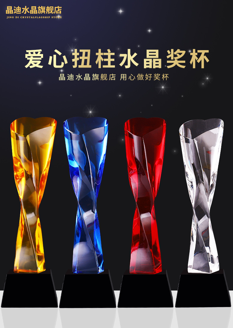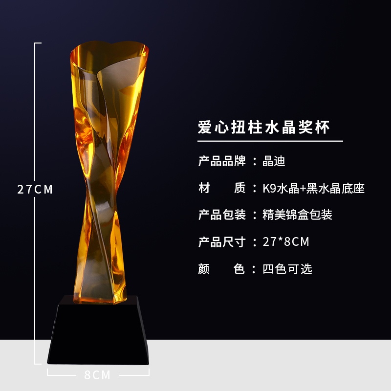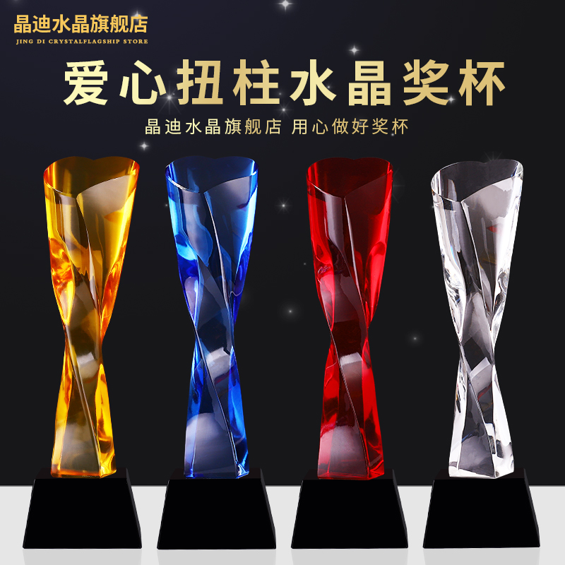 愛心扭柱水晶獎杯定制刻字企業(yè)晚會優(yōu)秀員工商務(wù)頒獎獎品獎杯定制