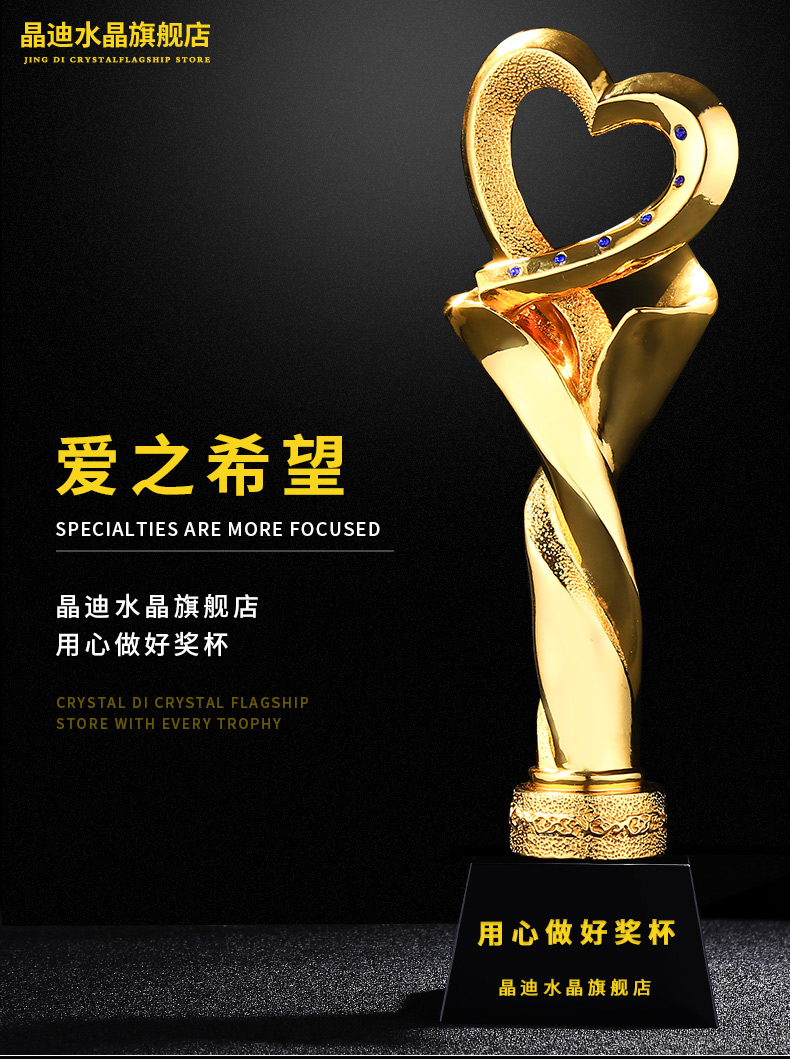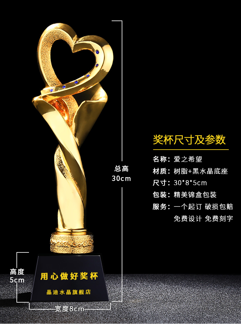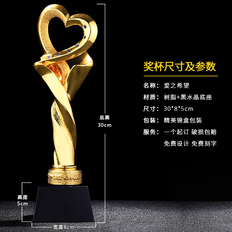 愛之希望 鍍金獎杯 創(chuàng)意獎杯專業(yè)定制 企業(yè)員工頒獎禮品訂制