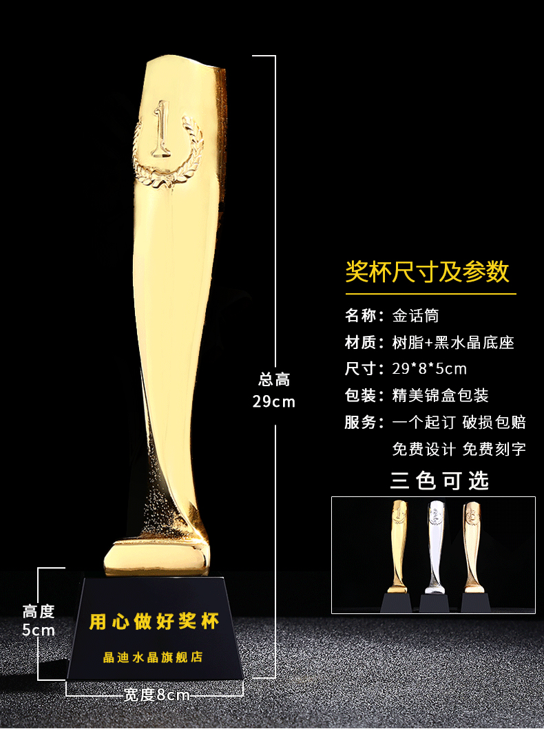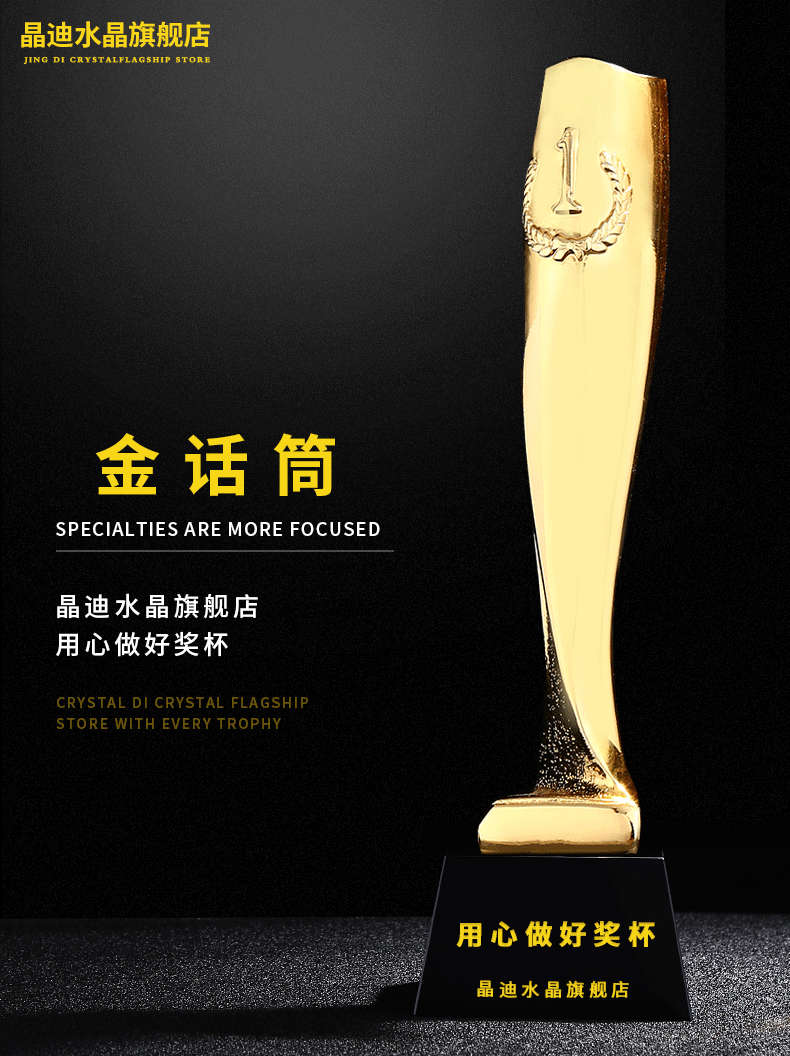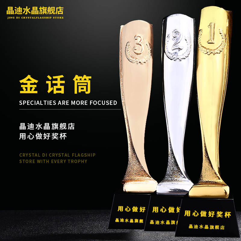 金話筒鍍金獎杯 創(chuàng)意獎杯專業(yè)定制 企業(yè)員工頒獎禮品訂制