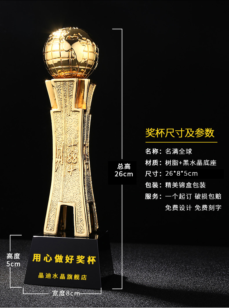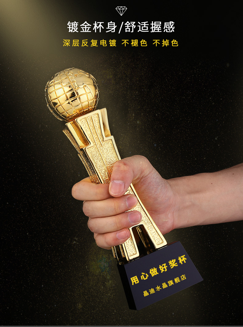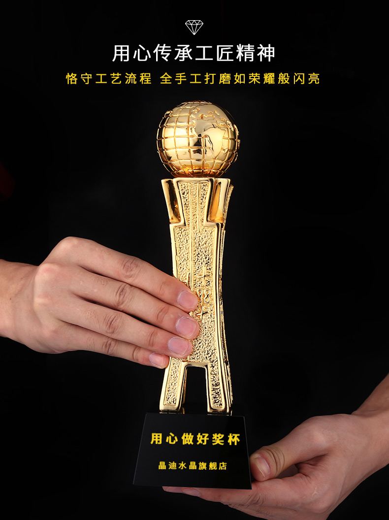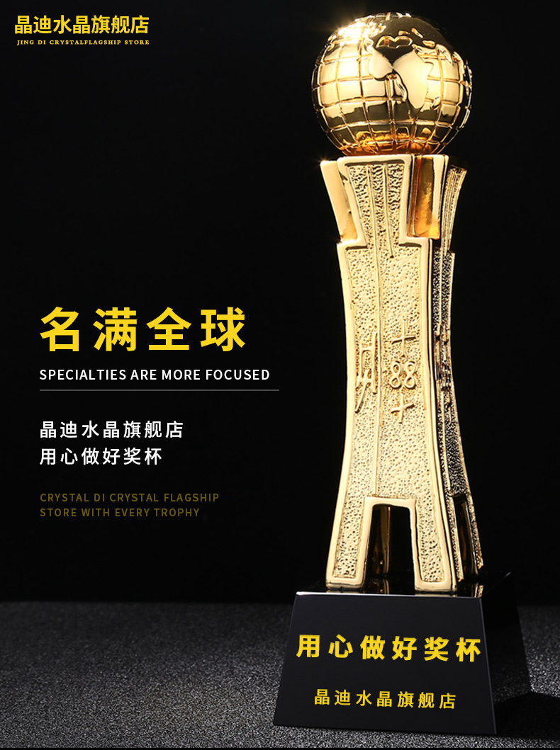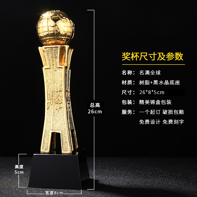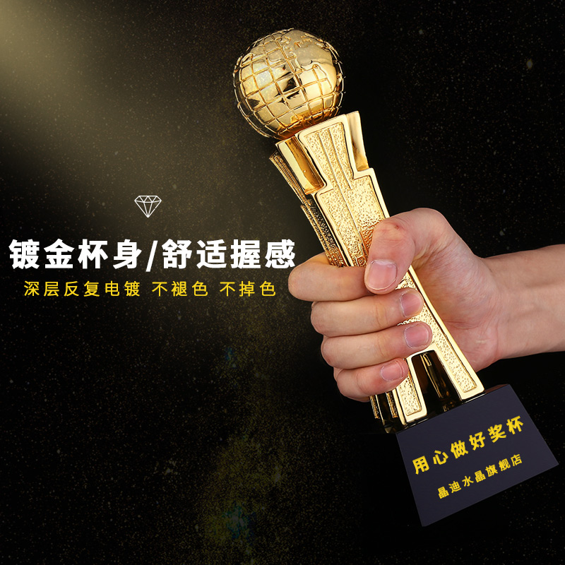 名滿全球 鍍金獎杯 創(chuàng)意獎杯專業(yè)定制 企業(yè)員工頒獎禮品訂制