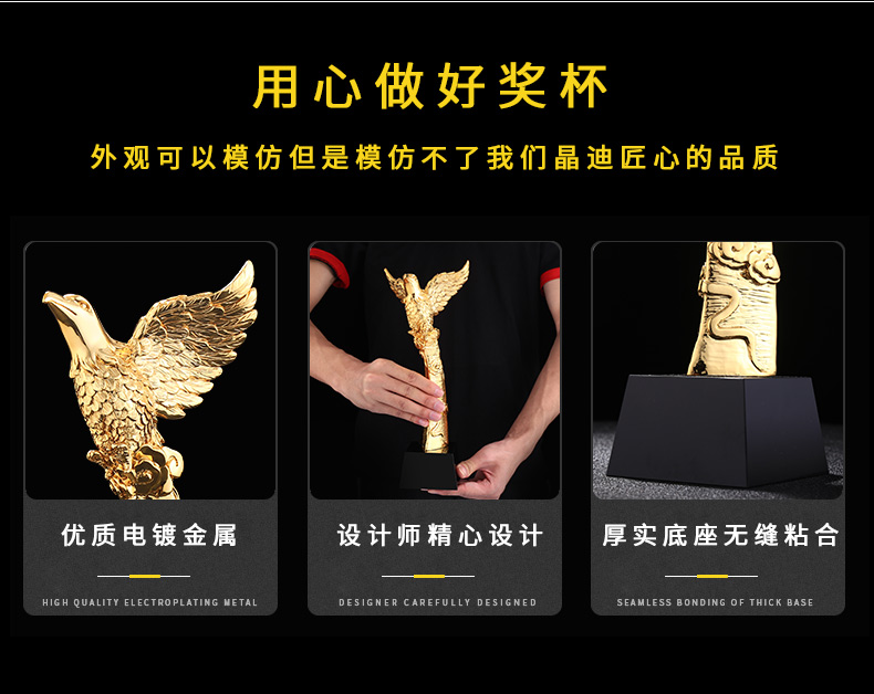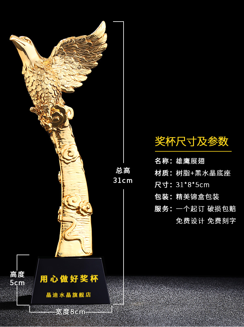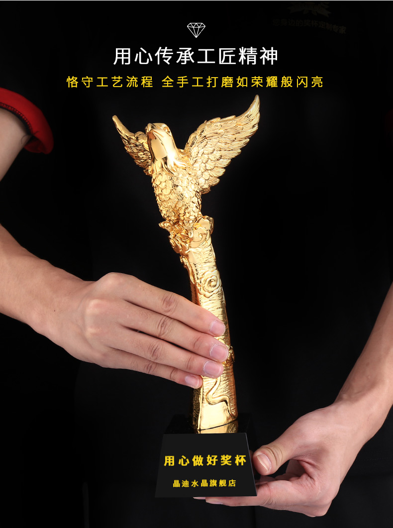 雄鷹展翅 鍍金獎杯 創(chuàng)意獎杯專業(yè)定制 企業(yè)員工頒獎禮品訂制